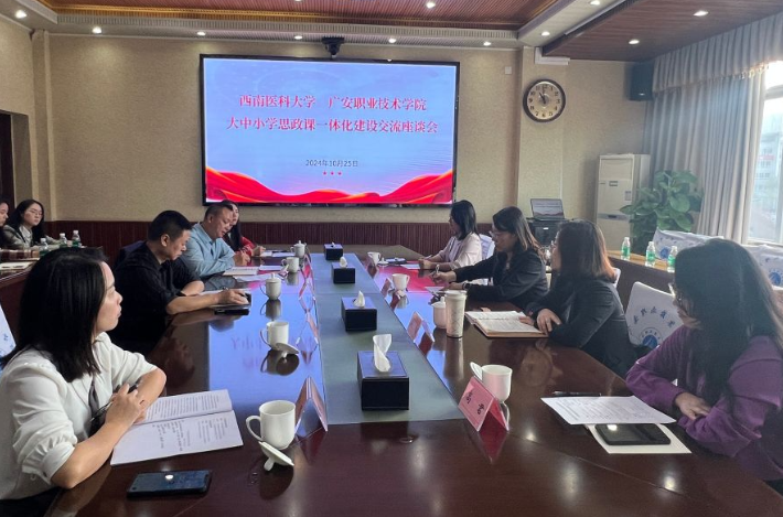 10月25日,西南医科大学澳门网投官方网站院长黄晓利、广安市教育和体育局副局长唐振江等一行7人莅临澳门网投官网指导交流,旨在推进两地大中小学思政课一体化建设,推动思政教育在各学段的深度融合与资源共享。澳门网投官方网站党委委员、副校长袁祖洪,澳门网投官方网站院长石乾福陪同调研。