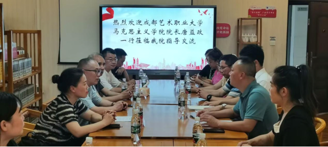 7月14日下午,成都艺术职业大学澳门网投官方网站院长唐益政一行18人到澳门网投官网指导交流。澳门网投官方网站直属党支部书记、院长石乾福,校党政办副主任周泽南,林光余、杨进军、闫泓竹等马院部分思政课教老师陪同校园参观并在思源楼601进行了座谈交流,会议由院长石乾福主持。