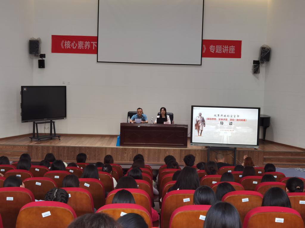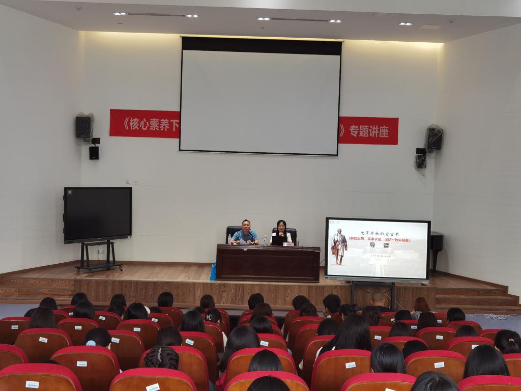 为学习贯彻党的二十大精神,深刻认知全面深化改革是新时代的鲜明特征,凝聚师生共识,推动学校高质量发展,6月6日下午3:00,小平干部学院院务委员、教研部部长胡利群在岳秀楼翔凤厅开展了以“解放思想,实事求是,团结一致向前看”为主题的学术讲座。讲座由澳门网投官方网站院长石乾福主持,澳门网投官方网站、学前教育学院、师范学院无课教师和学生共计170余人聆听了本次讲座。