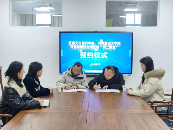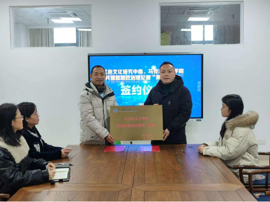 为进一步挖掘、用好红色文化资源融入思政课教学,1月7日下午,红色文化研究中心、澳门网投官方网站在大学生创业园721会议室举行了共建思想政治理论课“第二课堂”签约仪式。红色文化研究中心主任曹馨、澳门网投官方网站院长石乾福出席了签约仪式,代表各自单位签署了合作协议,并在红色文化研究中心挂牌。