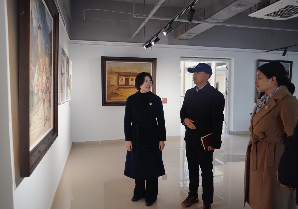 首先,澳门网投官方网站院长石乾福汇报了我校思政课程开设、师资队伍建设、思政精品项目等方面情况,重点从澳门网投官网牵头的大中小学思政课一体化建设工作的政策精神、学校做法、工作推进、成果展示、“习语润心”思政品牌建设等特色工作进行了汇报。接着,一行人到思政课第二课堂——广安红岩英烈主题油画展厅参观。红色文化研究中心主任曹馨就油画故事背景、英烈事迹、创作构思等方面为随行领导进行了讲解。石乾福结合基地资源的使用、大中小学思政课一体化建设要求以及资源开发利用等方面进行了补充说明。洪丽等随行领导对学校充分利用红色资源开展思政教育的特色做法给予了高度评价,并要求在工作中要善于思考,敢于创新,要从教学内容、教学方式、学生体验等方面总结经验,完善不足,切实增强学生对思政课教学的体验感和获得感。